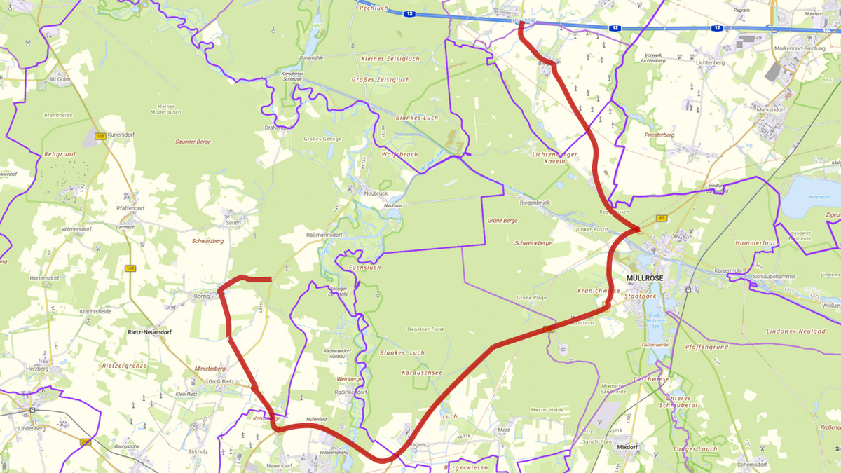 Im Gebiet der Gemeinde Rietz-Neuendorf sind davon die Bundesstraße B 168, die Landesstraße L 411. die Kreisstraße K 6728 sowie die Ortsdurchfahrt Görzig betroffen.