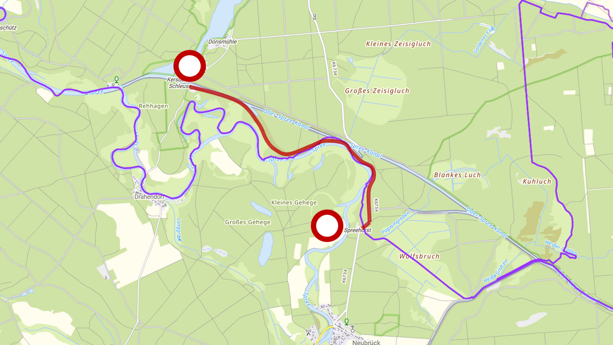 Hinweis zur Sperrung Radweg Neubrück - Kersdorfer Schleuse