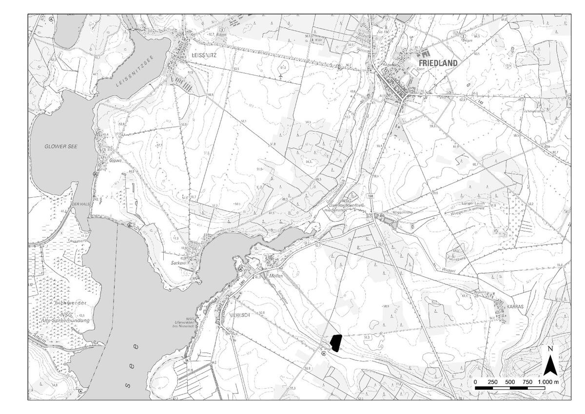 Eine weitere externe Ausgleichsfläche befindet sich südlich von Friedland bzw. östlich von Niewisch (s. folgende Abbildung, schwarze Markierung).