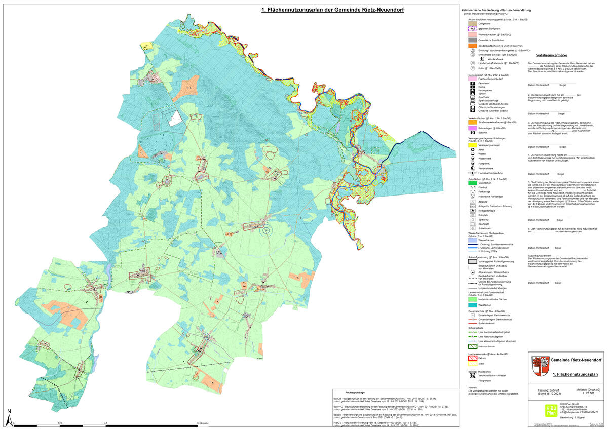 Die Gemeindevertretung der Gemeinde Rietz-Neuendorf hat in ihrer Sitzung am 12.04.2021 mit der Beschlussvorlage B-0308/2021 die Aufstellung eines Flächennutzungsplans (FNP) für das gesamte Gebiet der Gemeinde Rietz-Neuendorf beschlossen.