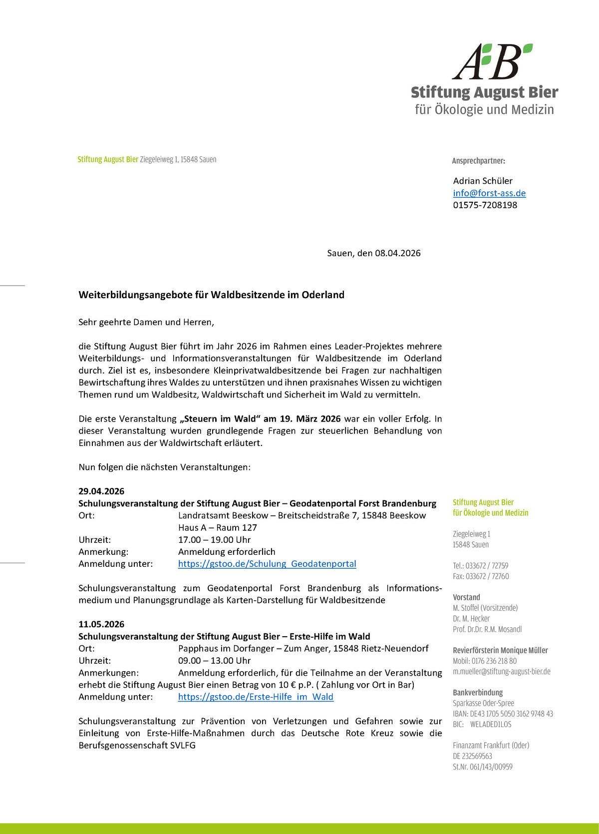 Weiterbildungsveranstaltungen für Waldbesitzende